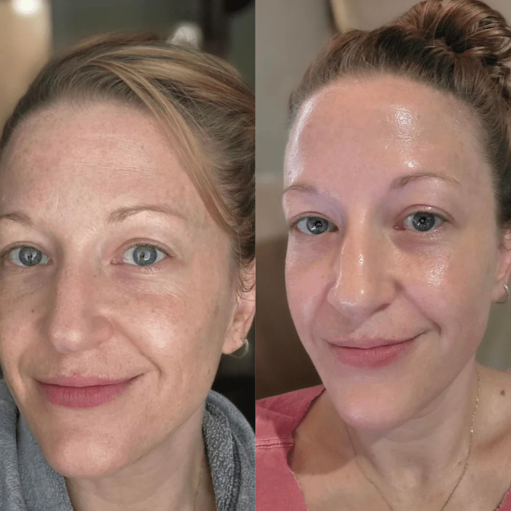 Notre formule utilise une exfoliation enzymatique (et non mécanique comme les scrubs à grains), ce qui signifie qu'elle dissout les cellules mortes sans frotter ni agresser votre peau.